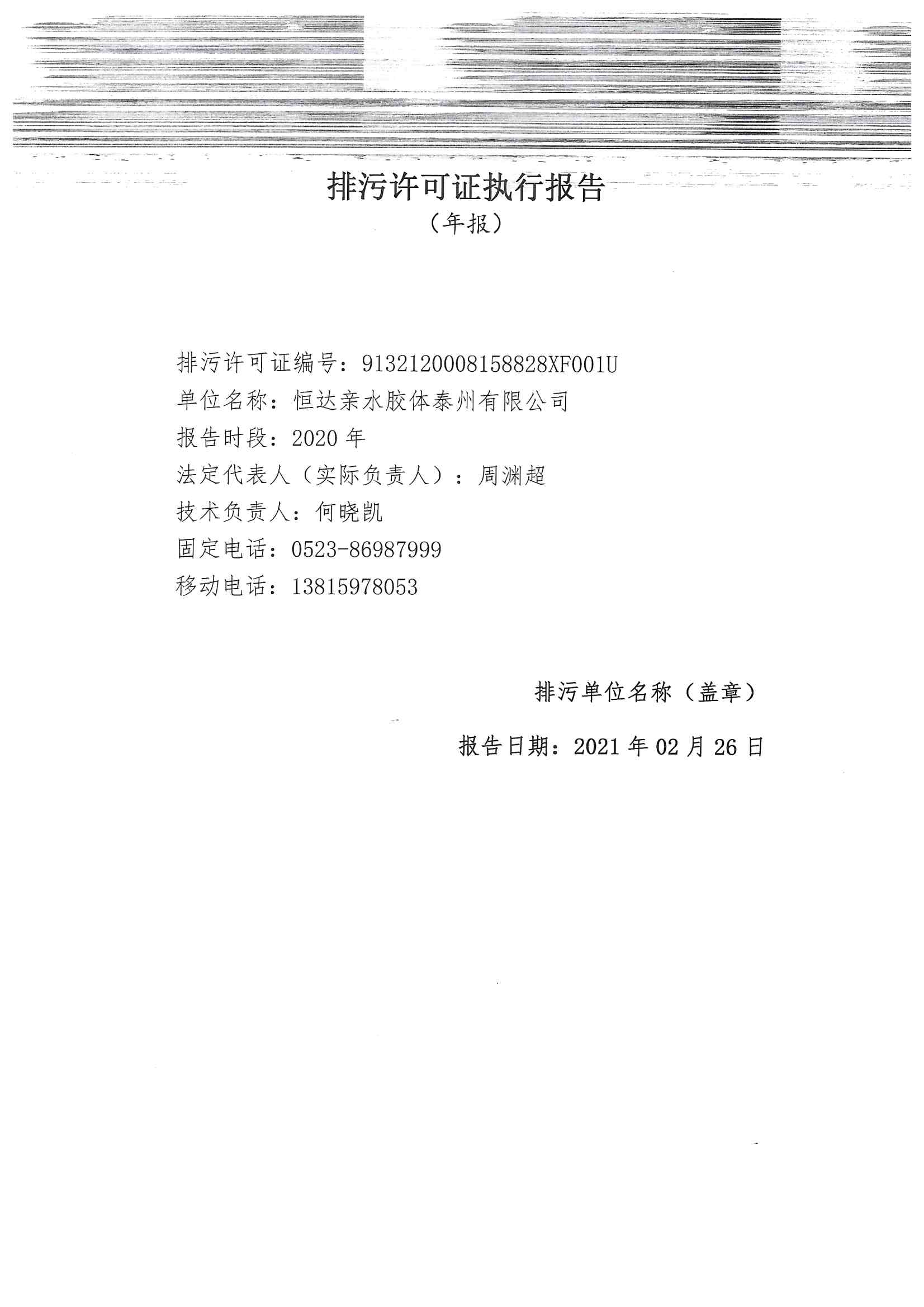 恒達(dá)科技泰興有限公司-2021年排污許可證執(zhí)行報(bào)告